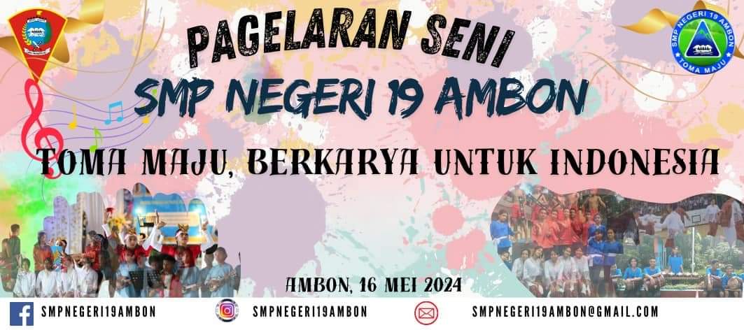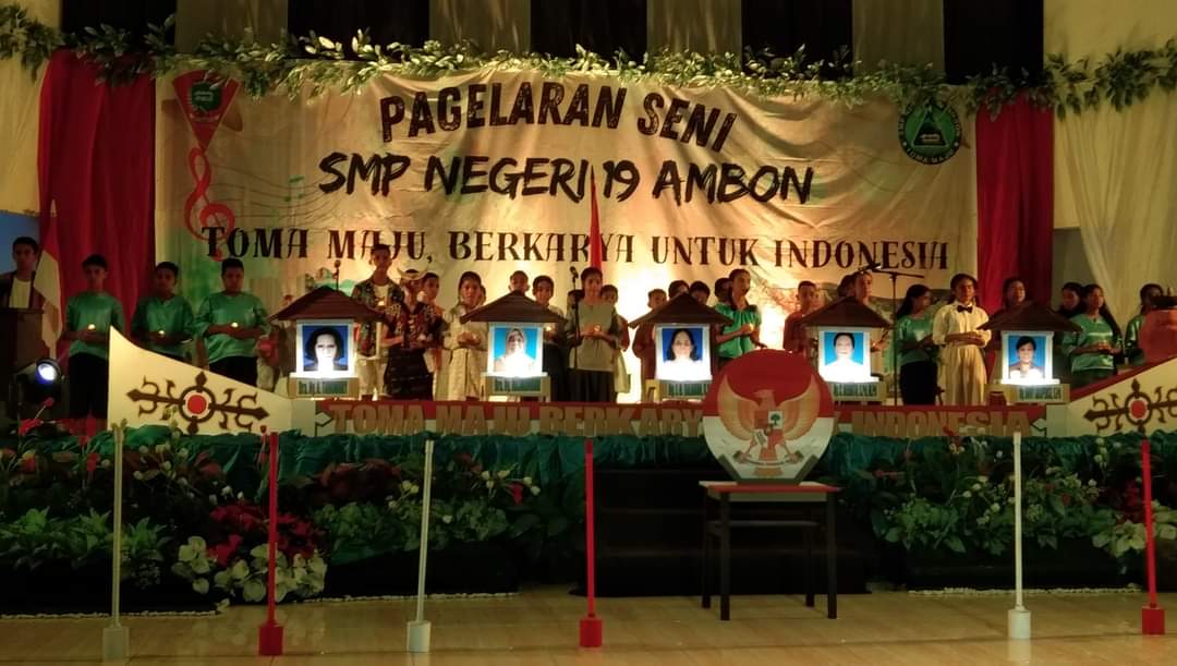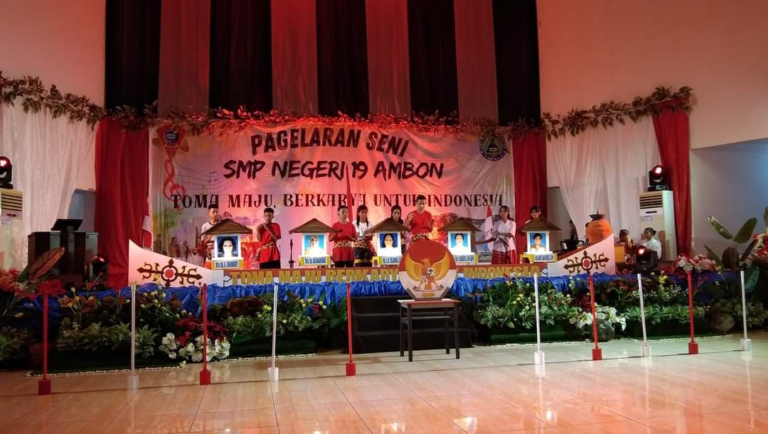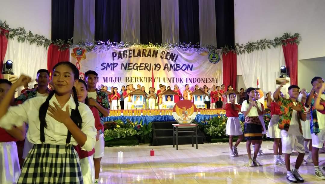 ” Berbagai kegiatan seni dipentaskan dalam pagelaran seni SMP 19 Ambon adalah saat berdiri, mulai dari selayang pandang terbentuknya SMP 19 yang dulunya Hingga menjadi SMP 19 Ambon Sekarang Ini.